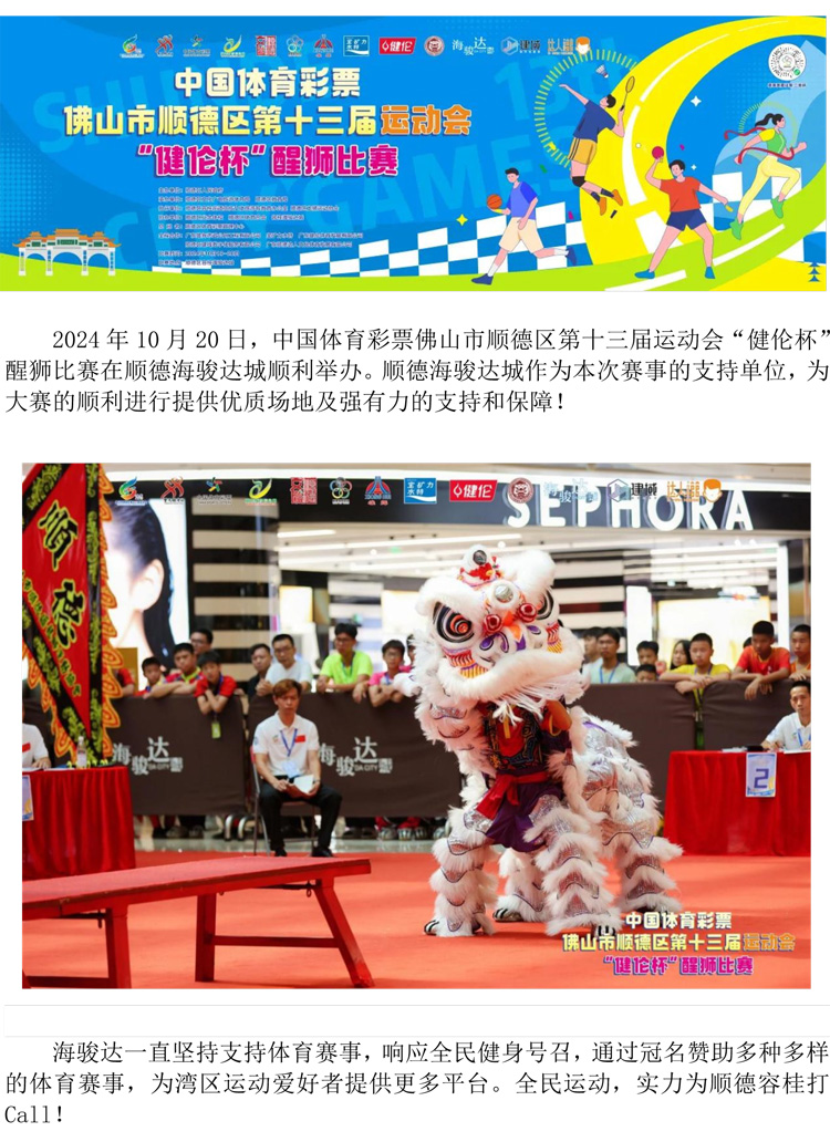 順德海駿達城大力支持區運會醒獅賽